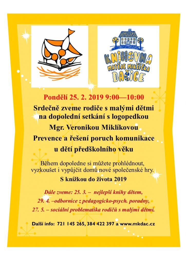 Proto se těšíme se na vítání občánků v Dačicích v dubnu, kdy ve spolupráci s městským úřadem a SKIPEm poprvé dostanou děti a hlavně zatím jejich rodiče sadu dárků a knihovna připraví postupně pro tyto rodiče zajímavý program.