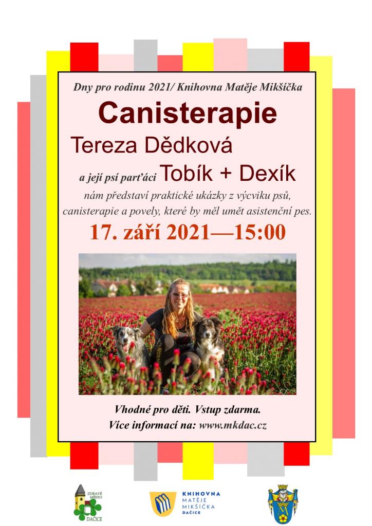 Pátek 17. září v 15 hodin - Knihovna - CANISTERAPIE s Terezkou Dědkovou a v 17 hodin BARVY INDIE - Tomáš Kubeš