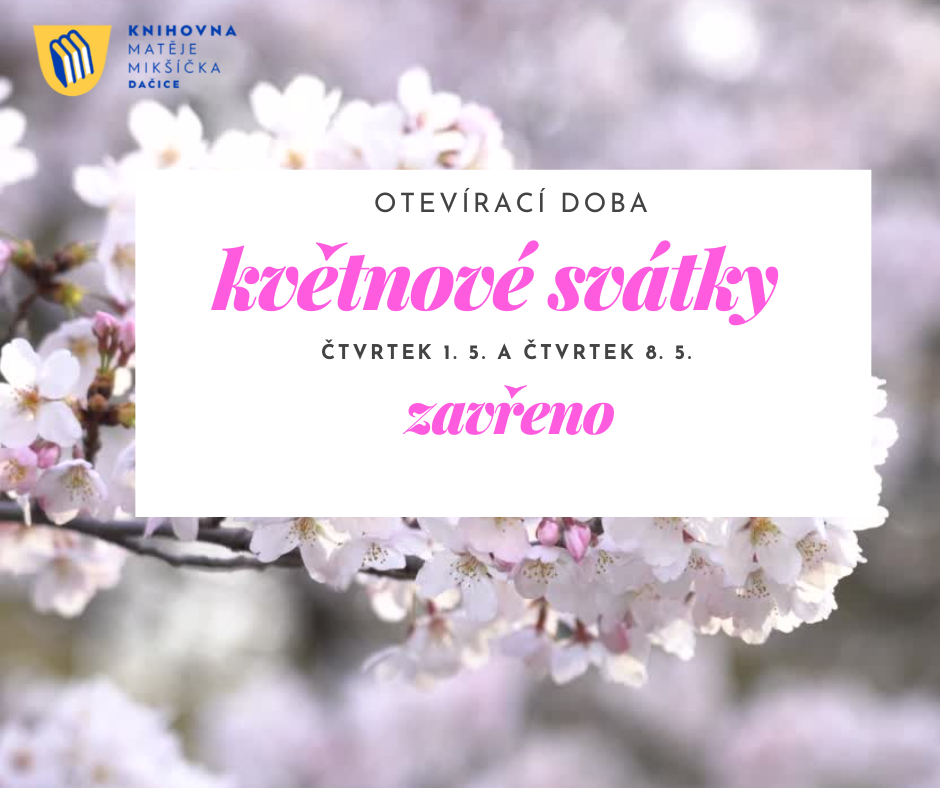 ve čtvrtky 1. 5. (Svátek práce) a 8. 5. (Den vítězství) bude knihovna uzavřena.