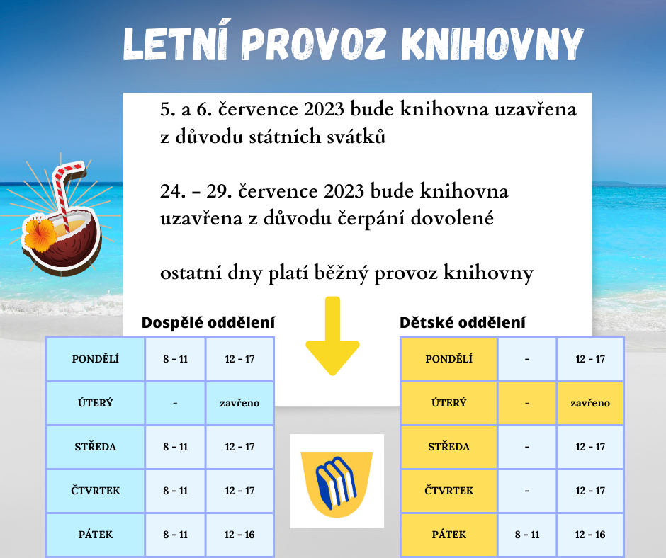 Od 24. 7. - 29. 7. 2023 bude knihovna uzavřena z důvodu čerpání dovolené. Všechny výpůjčky budou automaticky prodlouženy.