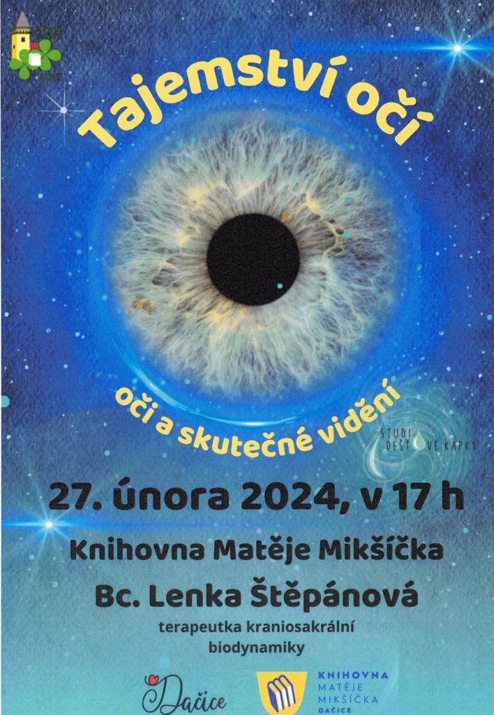 Zdravé město Dačice pořádá v úterý 27. 2. 2024 v naší knihovně zajímavou přednášku s terapeutkou kraniosakrální biodynamiky Bc.Lenkou Štěpánovou. Nenechte si ujít! Vstup na akci je volný.